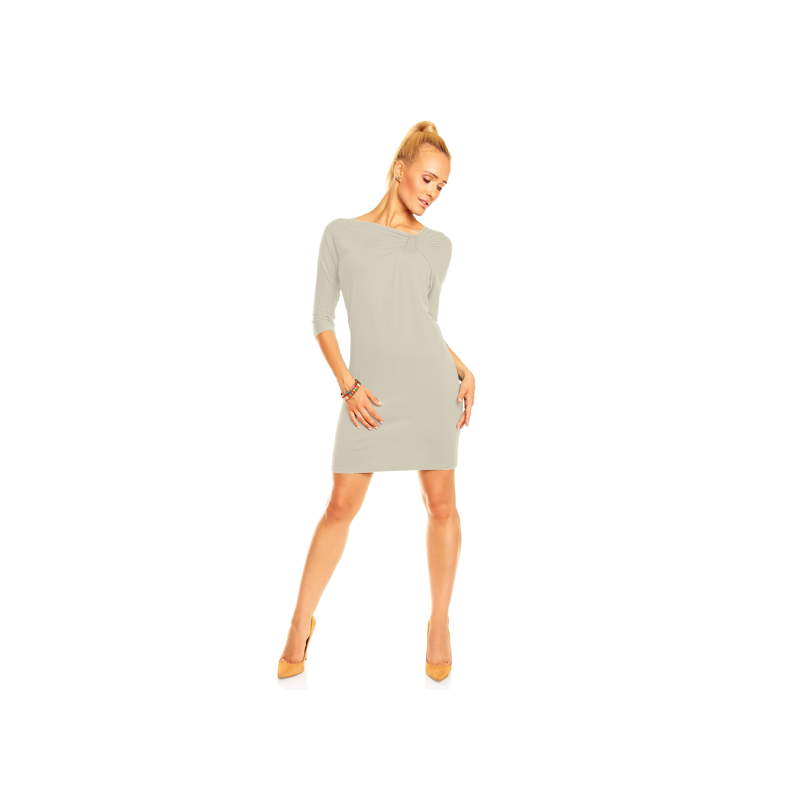 Volné šaty/kimono, které se postupně zužují, s asymetrickým výstřihem a 3/4 rukávem.