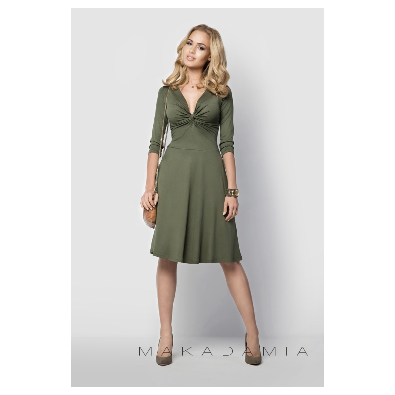 Krásné dámské midi šaty s efektním výstřihem a 3/4 rukávem, které jsou velmi pohodlné a pružné, takže se přizpůsobí každé ženě.