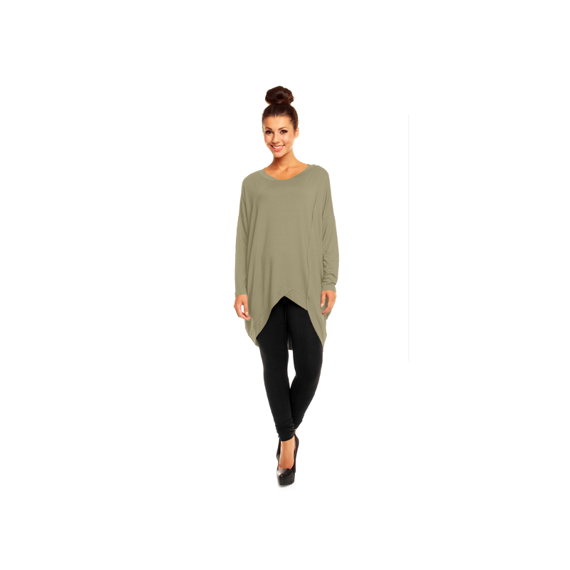 Skvělá asymetrická (vzadu o něco delší než vpředu) tunika zajímavého stylu. Rukávy ve tvaru netopýra dodávají lehkost a styl. Volný střih zabezpečí, že se každá žena bude cítit v tomto oblečení pohodlně a volně. Hodí se jak k legínám, tak k džínám.