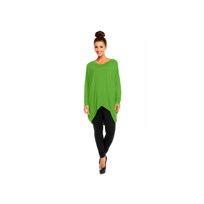 Skvělá asymetrická (vzadu o něco delší než vpředu) tunika zajímavého stylu. Rukávy ve tvaru netopýra dodávají lehkost a styl. Volný střih zabezpečí, že se každá žena bude cítit v tomto oblečení pohodlně a volně. Hodí se jak k legínám, tak k džínám.