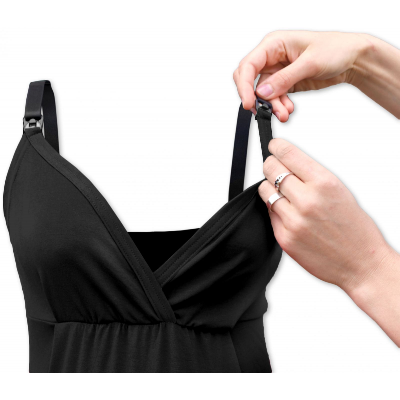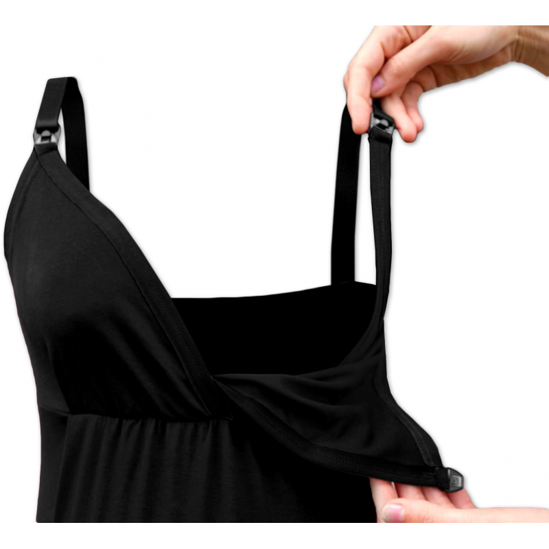 Tílko je širšího áčkového střihu, s gumičkou pod prsy, která jej řasí v oblastí bříška. Tílko je tak vhodné nejen pro kojící ženy, kterým schová nějaké to poporodní kilo, ale i pro těhotné ženy.