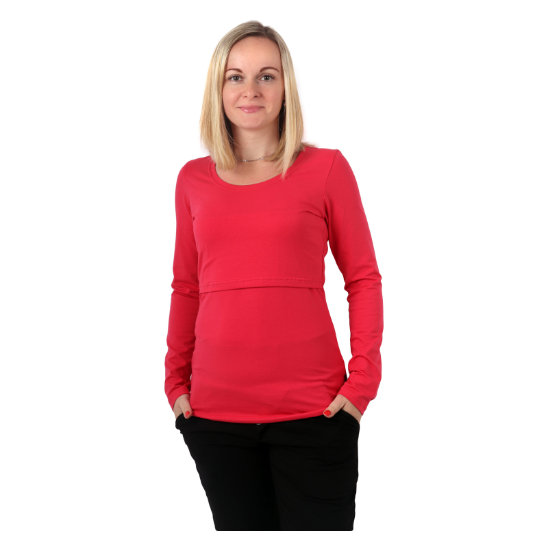 Kojící tričko), z bavlněného úpletu ( 92% bavlna + 5% elastan ) je volnějšího, dole rozšířeného střihu, takže nenápadně schová "poporodní" bříško a zároveň je tak velkoryse střižené, že se do něj vejde i bříško těhotených žen- tričko tedy užijete od těhotenství, pak na kojení a dále jej můžete nosit jako jednoduché a zajímavé tričko, na kterém nikdo nepozná, že mělo i jiné funkce. :-) Tričko má přední díl zakončený nahoře gumičkou nad prsama a přes něj je krátký volný díl končíci pod prsama, takže vyhrnutím toho horního a stažením toho spodního získáte diskrétní prostor pro pohodlné kojení miminka.