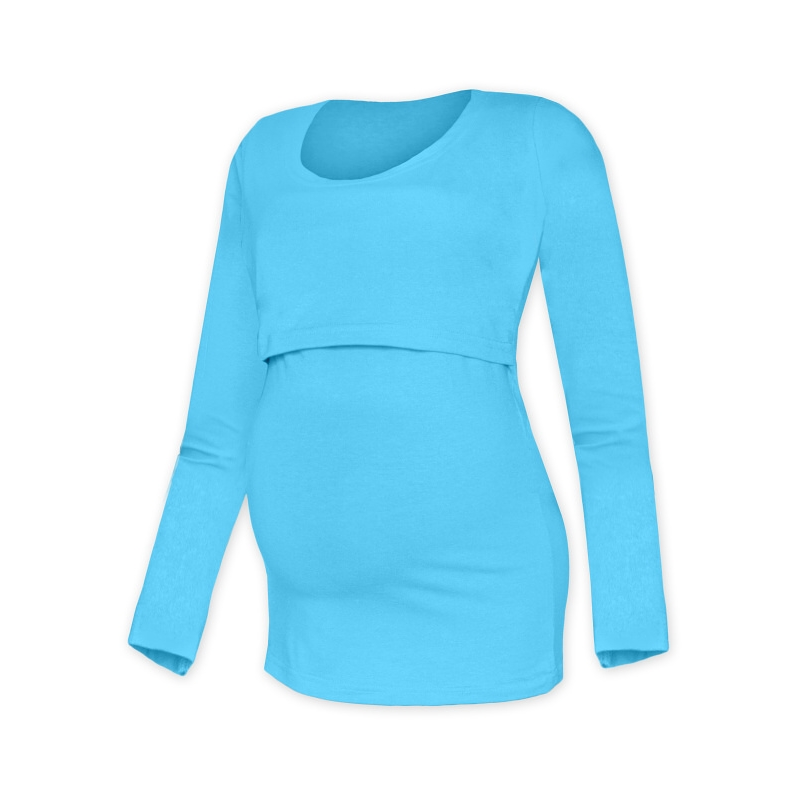Kojící tričko), z bavlněného úpletu ( 92% bavlna + 5% elastan ) je volnějšího, dole rozšířeného střihu, takže nenápadně schová "poporodní" bříško a zároveň je tak velkoryse střižené, že se do něj vejde i bříško těhotených žen- tričko tedy užijete od těhotenství, pak na kojení a dále jej můžete nosit jako jednoduché a zajímavé tričko, na kterém nikdo nepozná, že mělo i jiné funkce. :-) Tričko má přední díl zakončený nahoře gumičkou nad prsama a přes něj je krátký volný díl končíci pod prsama, takže vyhrnutím toho horního a stažením toho spodního získáte diskrétní prostor pro pohodlné kojení miminka.