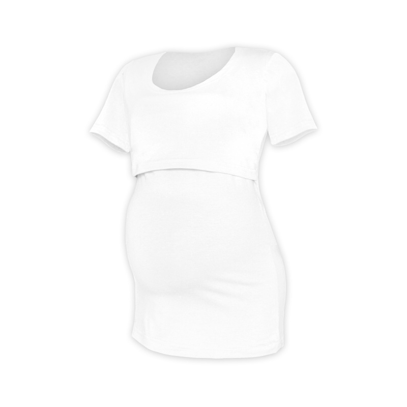 Kojící tričko), z bavlněného úpletu ( 92% bavlna + 5% elastan ) je volnějšího, dole rozšířeného střihu, takže nenápadně schová "poporodní" bříško a zároveň je tak velkoryse střižené, že se do něj vejde i bříško těhotených žen- tričko tedy užijete od těhotenství, pak na kojení a dále jej můžete nosit jako jednoduché a zajímavé tričko, na kterém nikdo nepozná, že mělo i jiné funkce. :-) Tričko má přední díl zakončený nahoře gumičkou nad prsama a přes něj je krátký volný díl končíci pod prsama, takže vyhrnutím toho horního a stažením toho spodního získáte diskrétní prostor pro pohodlné kojení miminka.