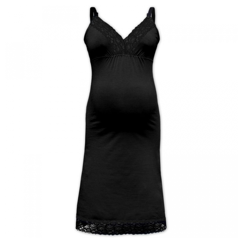 JANA- noční košile v kombinaci bavlněného úpletu ( 92% bavlna + 8% elastan ) a krajky ( 88% polyamid + 12% elastan ). Košilka je vhodná svým áčkovým střihem a velkou elasticitou vhodná nejen pro kojící, ale i těhotné ženy. Košilka má podprsenková ramínka, u kterých můžete klasicky nastavovat jejich délku, vpředu je mateřské zapínání, díky kterému se dá celý košíček stáhnout dolů.