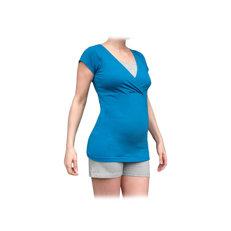 Pyžamo navržené speciálně pro těhotné a kojící žený z bavlněného úpletu s příměsí 6% elastanu.