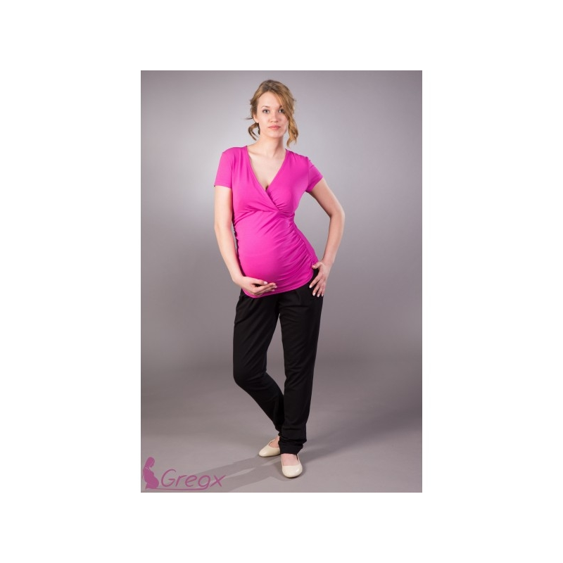 Tepláky se perfektně přizpůsobí těhotné postavě, takže žena vypadá velmi pěkně.